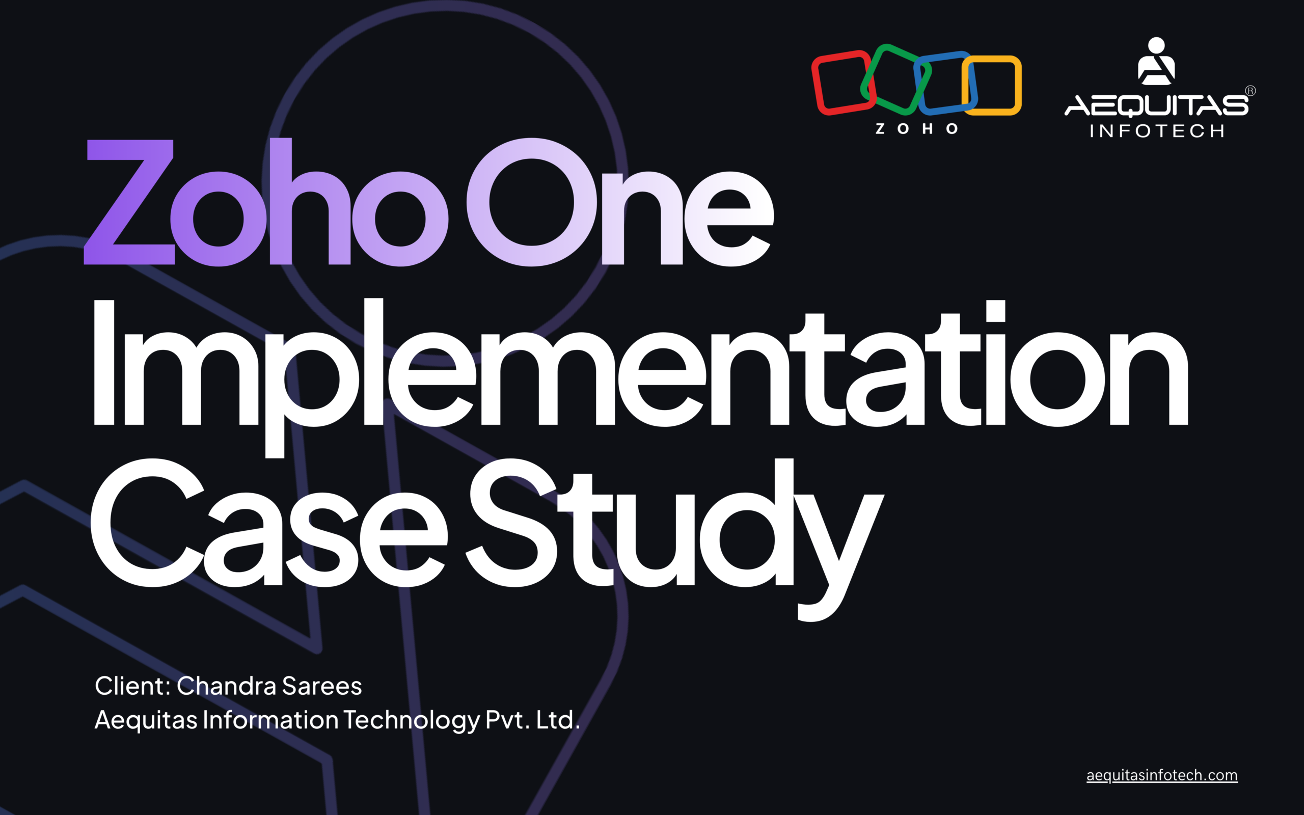 Chandra Sarees upgraded to the Zoho One system. Aequitas implemented tools like Zoho Books, Inventory, Commerce, People, Payroll, Mail authentication, and WhatsApp automation. This change improved operations, accuracy, and visibility.